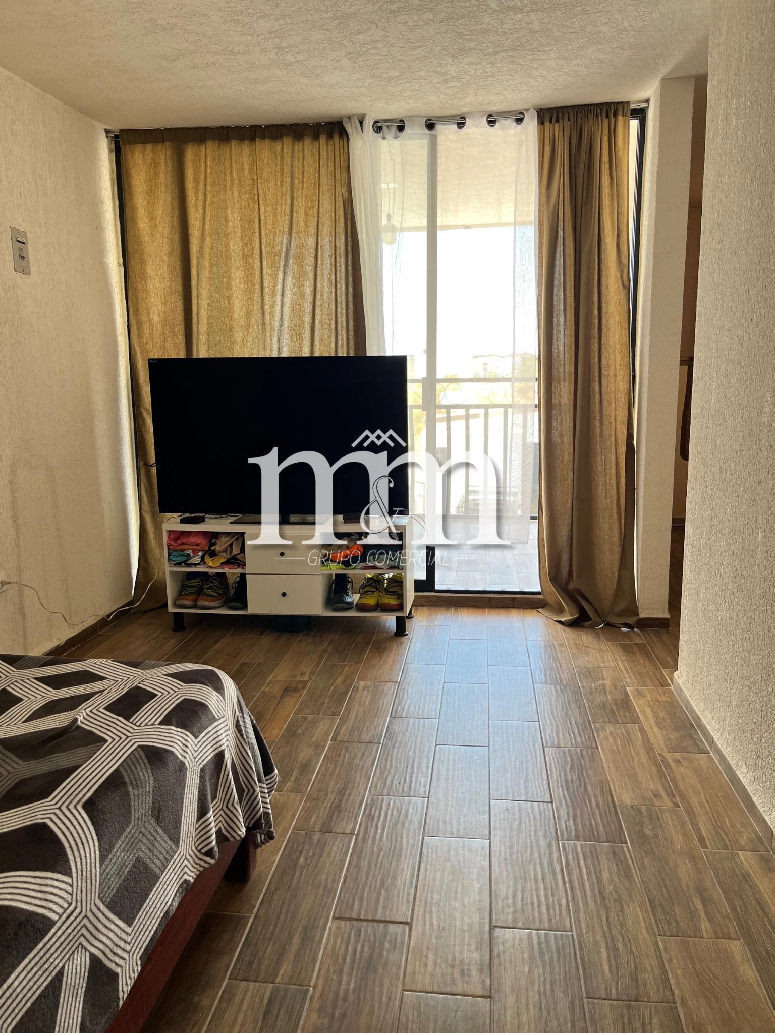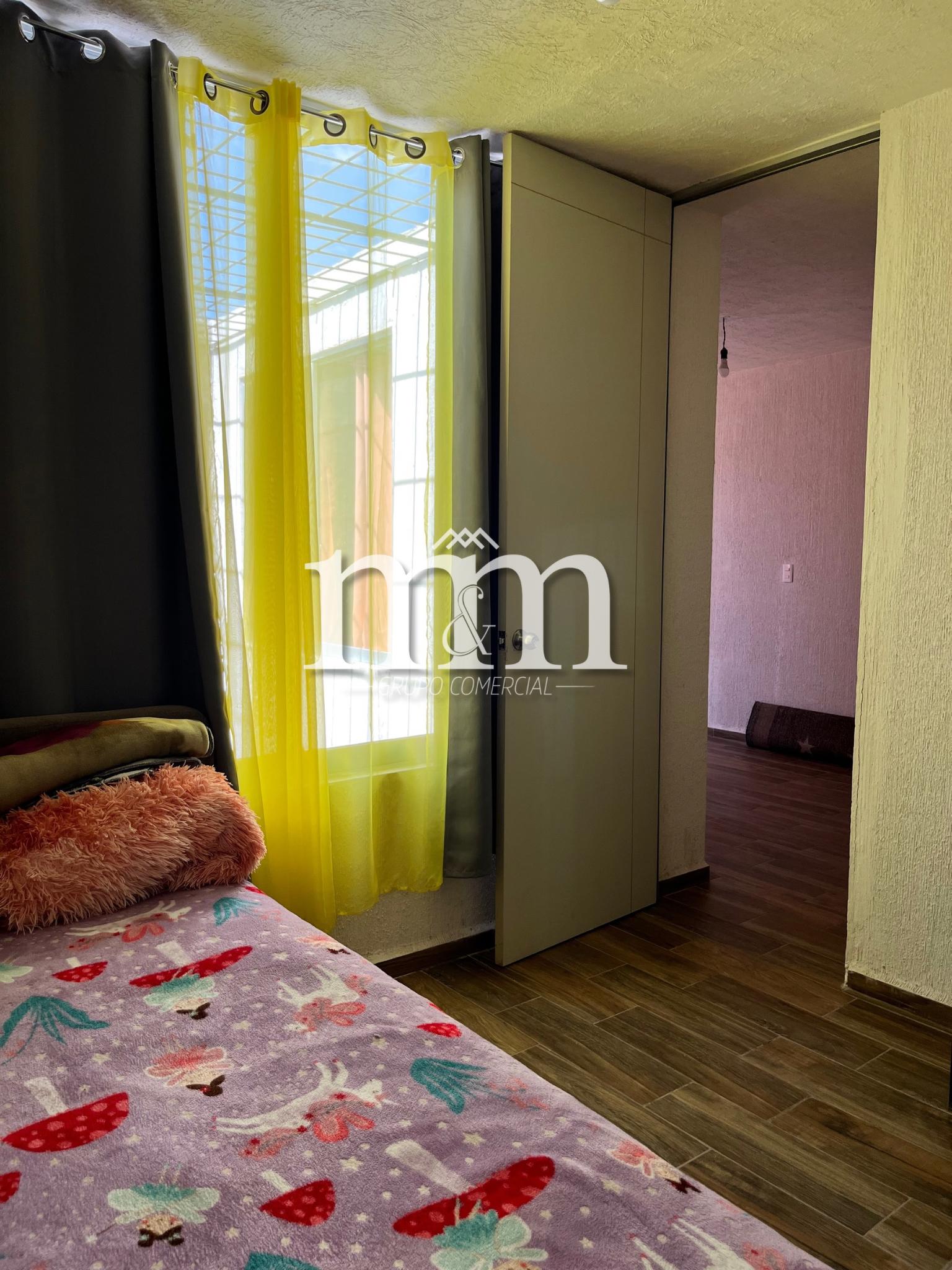 Cochera con portón, amplia sala-comedor, cocina integral, baño completo, 1 recámara con clóset, patio grande con área de lavado.